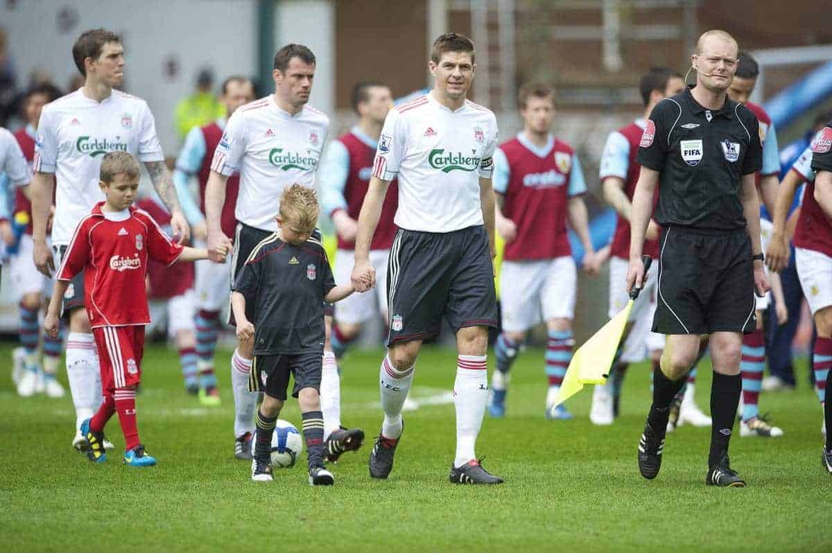 BURNLEY, ENGLAND - Sunday, April 25, 2010: Liverpool's captain Steven Gerrard MBE walks out to face Burnley during the Premiership match at Turf Moor. (Photo by David Rawcliffe/Propaganda)
