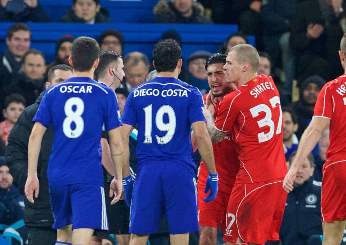 A Branislav Ivanovic header in the fourth minute of extra-time edged a frenetic, ill-tempered clash with Liverpool 1-0 as the Blues advanced to the March 1 final 2-1 on aggregate. Diego Costa was involved in three of the game’s main talking points – stamps on Emre Can and Martin Skrtel – and a Chelsea penalty appeal when tripped by Skrtel.