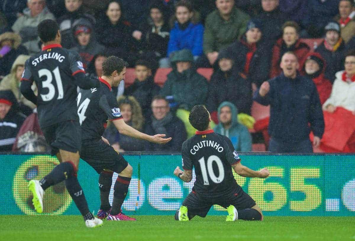 Philippe Coutinho‘s exceptional strike amid a series of controversial decisions from referee Kevin Friend helped Liverpool overcome Southampton 2-0 in what could prove a crucial result in the chase for a Champions League place.