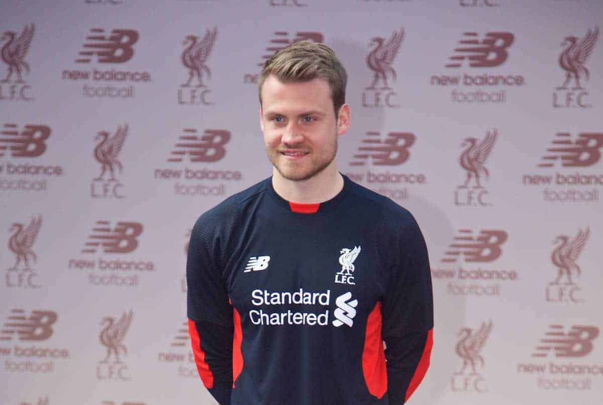 LIVERPOOL, ENGLAND - Friday, April 10, 2015: Liverpool's goalkeeper Simon Mignolet during the launch for the New Balance 2015/16 home kit at Anfield. (Pic by Paul Currie/Propaganda)