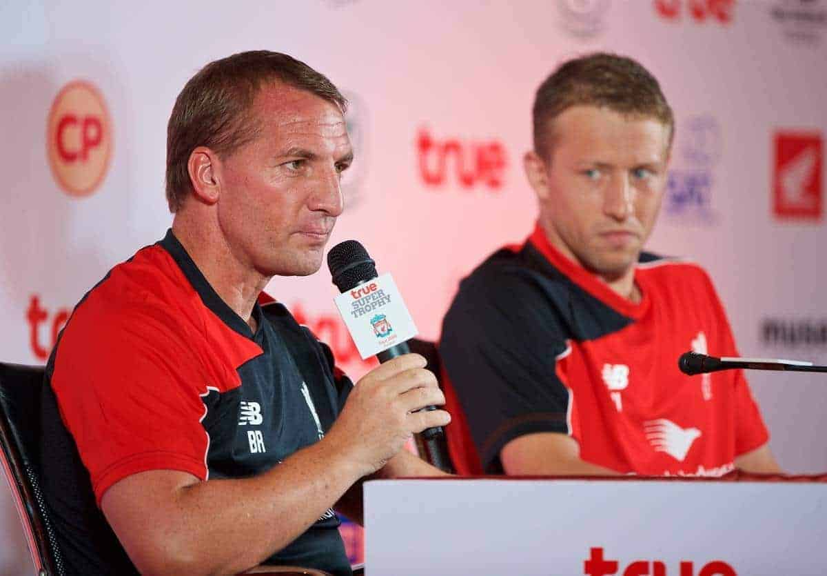 Liverpool boss Brendan Rodgers and midfielder Lucas Leiva attended a pre-match press conference in Bangkok on Monday ahead of the Reds’ first pre-season friendly.