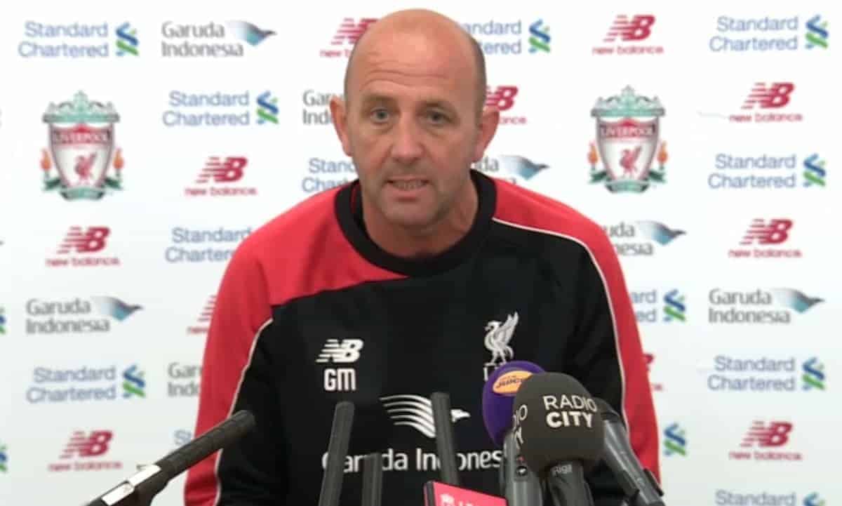 Liverpool first-team coach Gary McAllister attended the pre-match press conference ahead of Liverpool vs. Carlisle United in the League Cup.