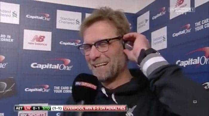 Jurgen Klopp gave a very honest and charismatic sign off to his post-match interview with Sky Sports following Liverpool’s League Cup semi-final penalty shoot-out victory over Stoke City on Tuesday night.