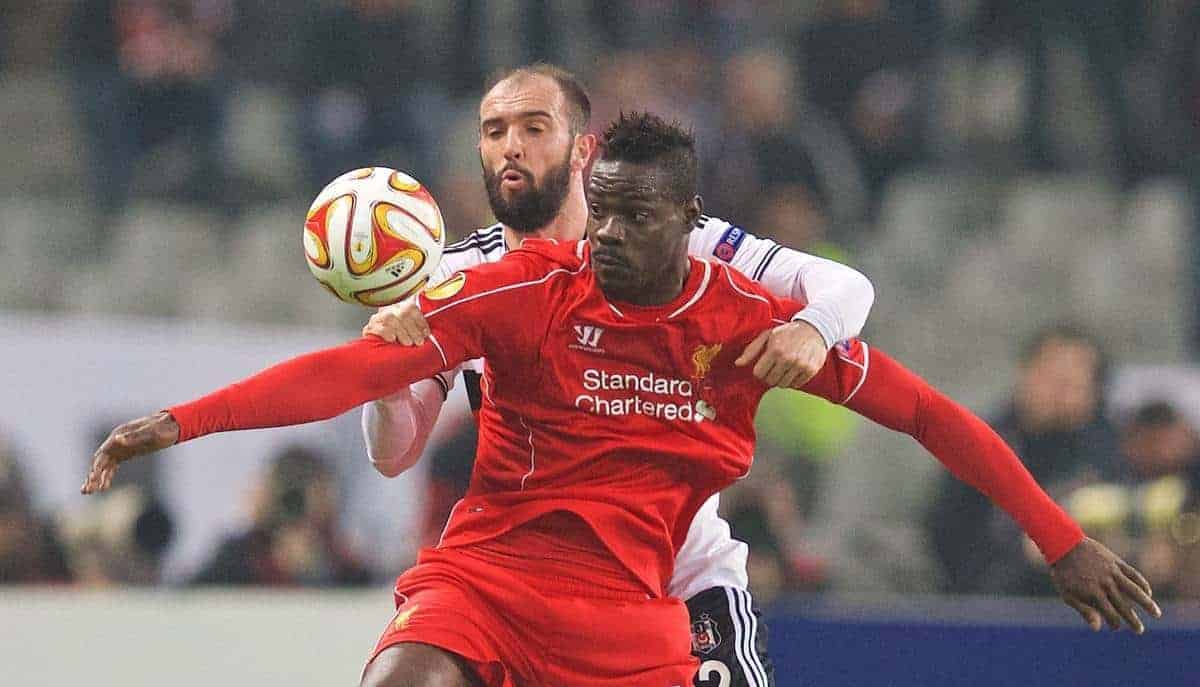 ISTANBUL, TURKEY - Thursday, February 26, 2015: Liverpool's Mario Balotelli in action against Besiktas JK's Serdar Kurtulus during the UEFA Europa League Round of 32 2nd Leg match at the Ataturk Olympic Stadium. (Pic by David Rawcliffe/Propaganda)