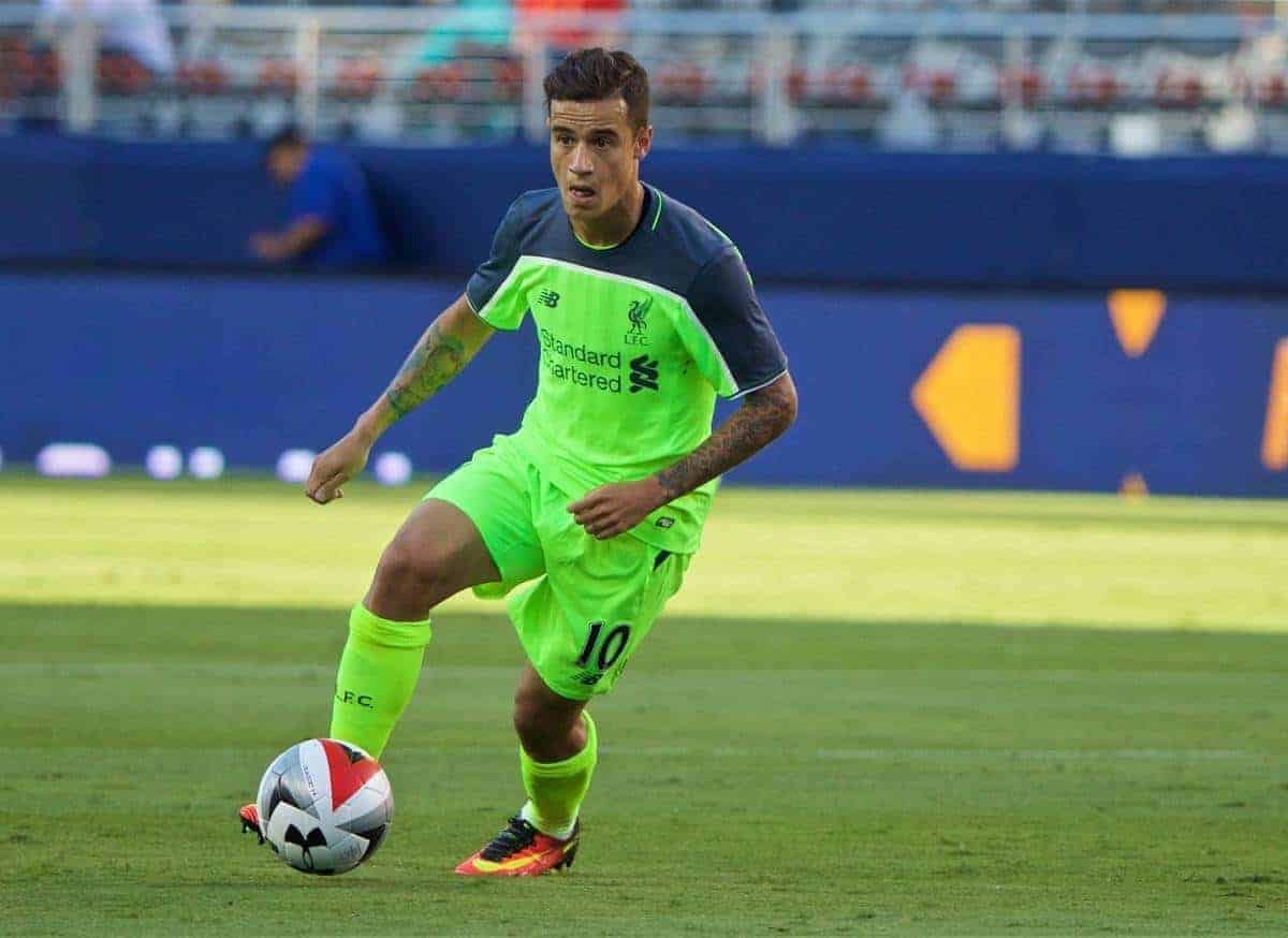 Philippe Coutinho returns to the Liverpool lineup for today’s match at Tottenham, having missed the midweek cup game at Burton Albion.