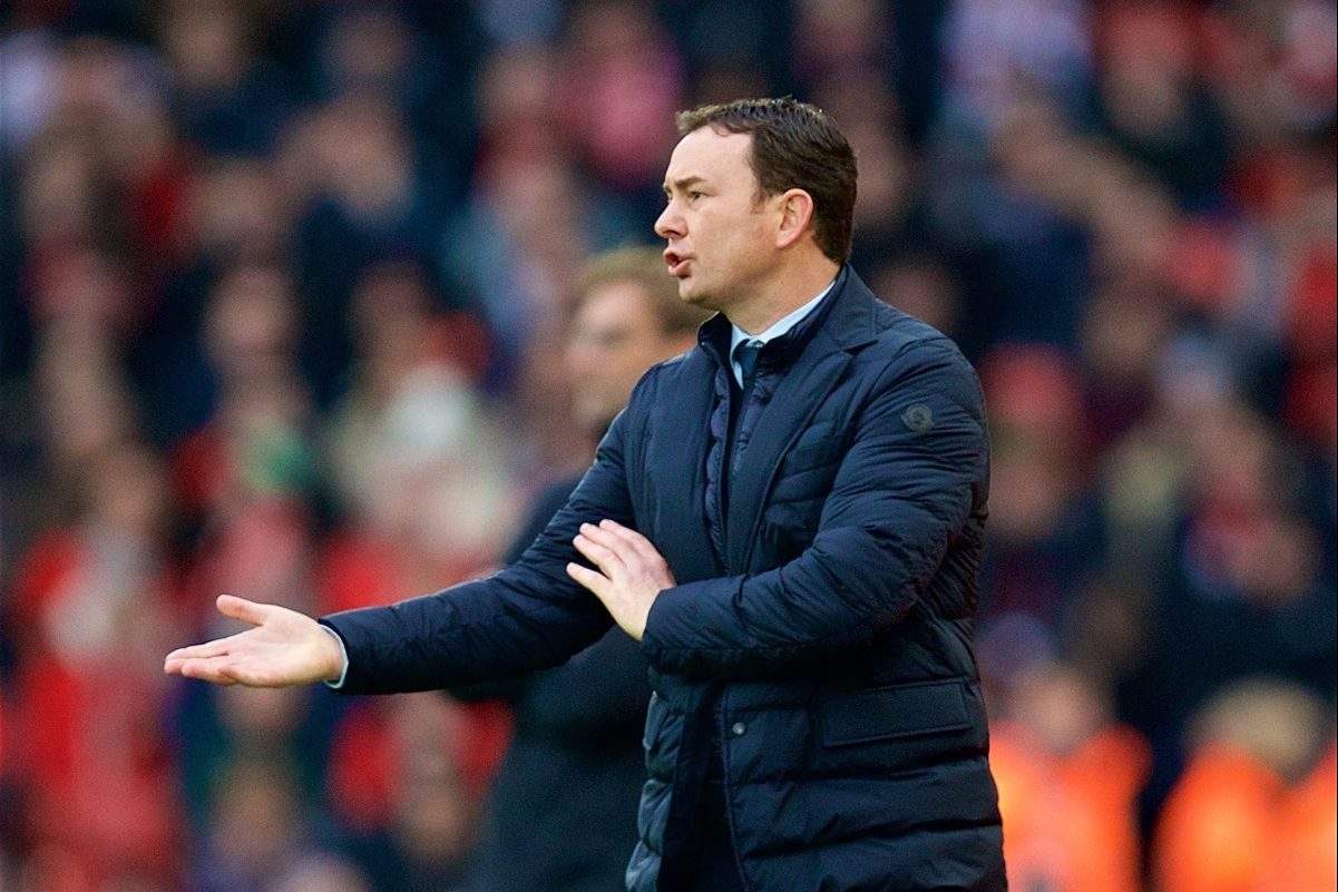 LIVERPOOL, ENGLAND - Saturday, January 7, 2017: Plymouth Argyle's manager Derek Adams during the FA Cup 3rd Round match against Liverpool at Anfield. (Pic by David Rawcliffe/Propaganda)