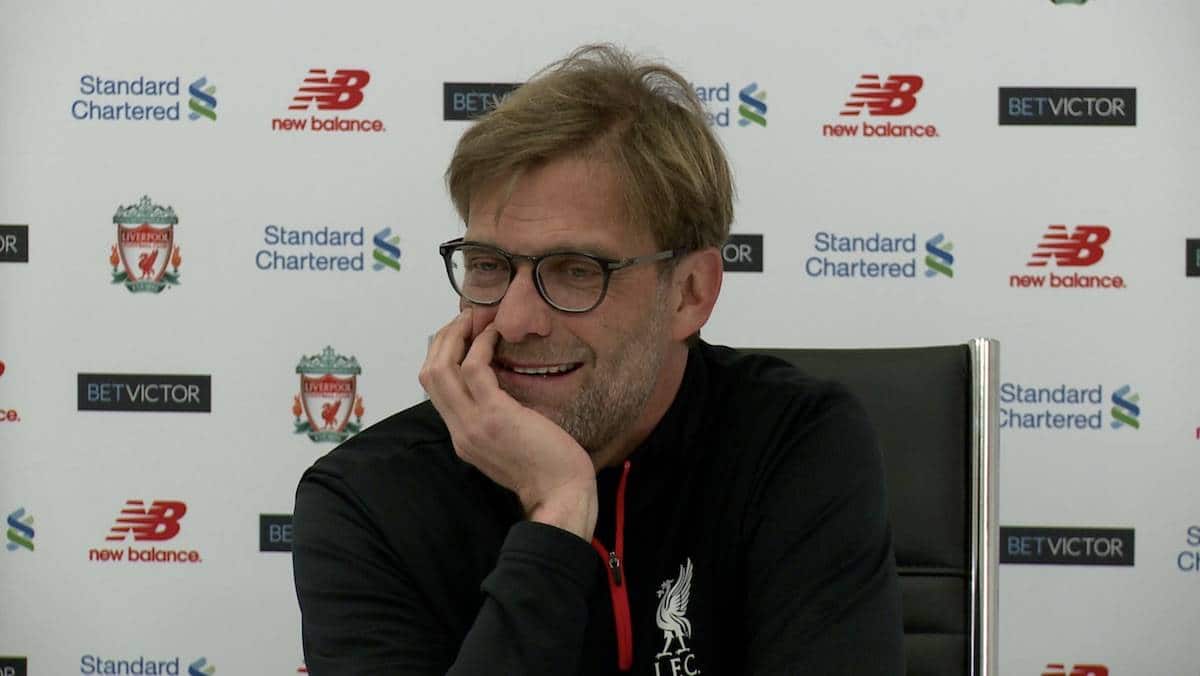 Klopp spoke to reporters at Melwood on Thursday—strangely holding his pre-match press conference over three days before the game.