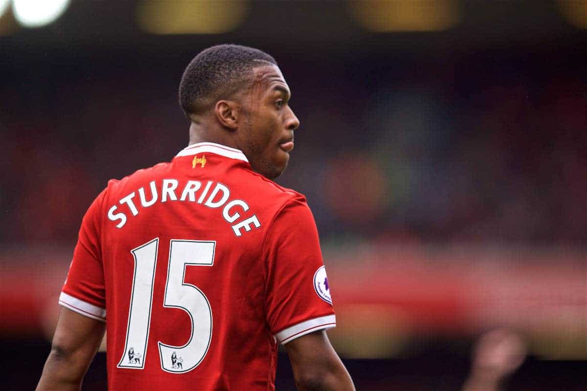 LIVERPOOL, ENGLAND - Sunday, May 21, 2017: Liverpool's Daniel Sturridge in action against Middlesbrough during the FA Premier League match at Anfield. (Pic by David Rawcliffe/Propaganda)