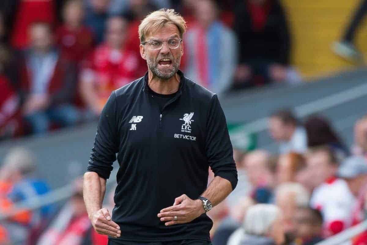 LIVERPOOL, ENGLAND - Saturday, September 16, 2017: Liverpool manger Jurgen Klopp reacts during the FA Premier League match between Liverpool and Burnley at Anfield. (Pic by Peter Powell/Propaganda)
