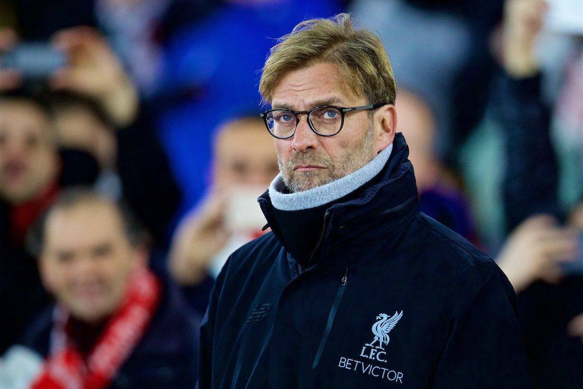 SOUTHAMPTON, ENGLAND - Wednesday, January 11, 2017: Liverpool's manager Jürgen Klopp before the Football League Cup Semi-Final 1st Leg match against Southampton at St. Mary's Stadium. (Pic by David Rawcliffe/Propaganda)