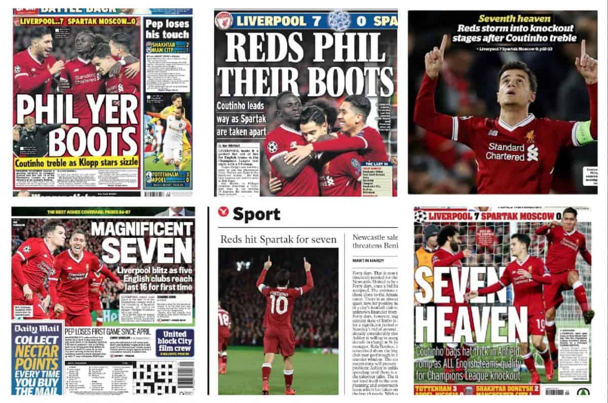 The media praised Liverpool’s attacking play in the 7-0 rout of Spartak Moscow and believe the Reds took another step in development by reaching the last-16.