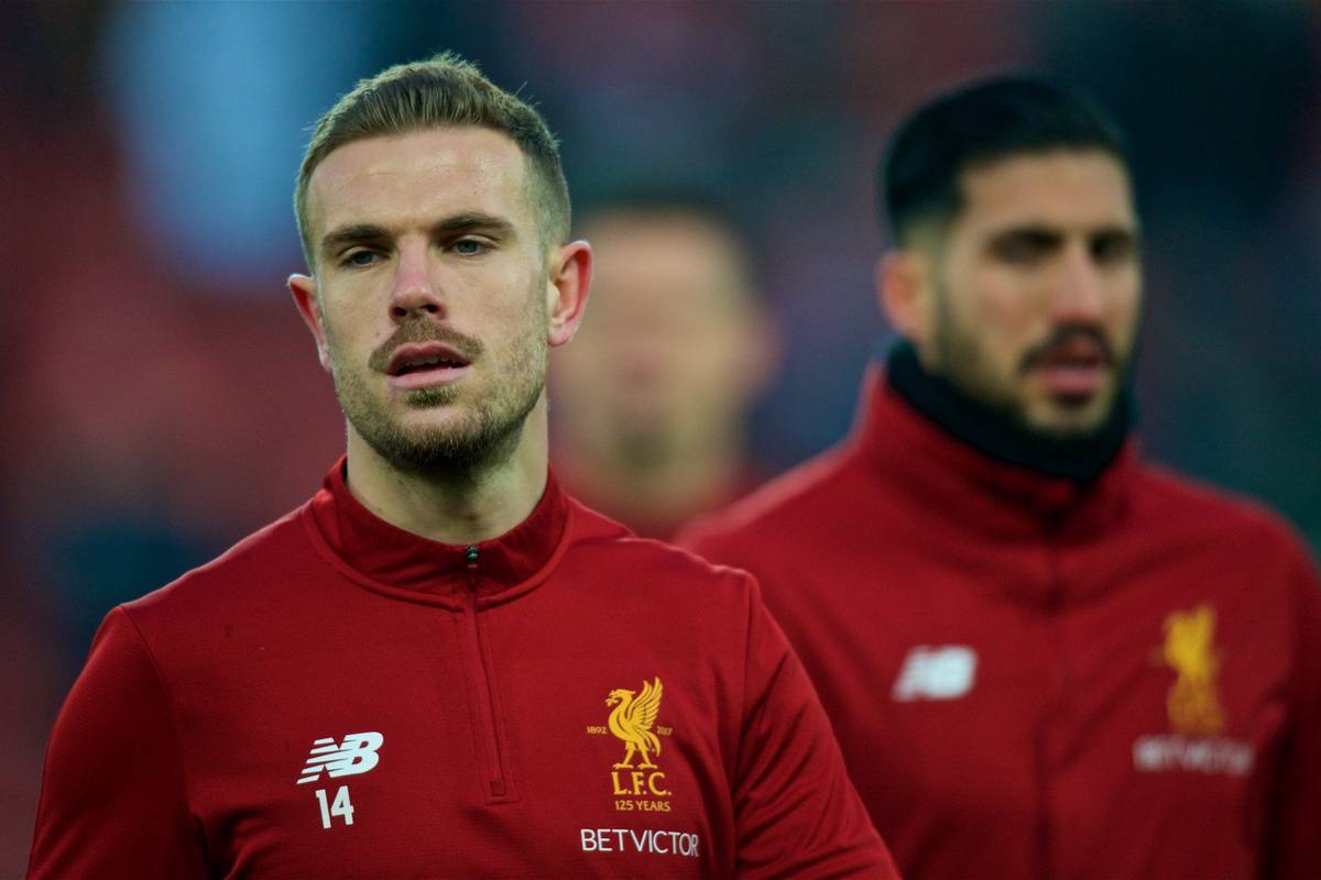 LIVERPOOL, ENGLAND - Saturday, March 3, 2018: Liverpool's captain Jordan Henderson during the pre-match warm-up before the FA Premier League match between Liverpool FC and Newcastle United FC at Anfield. (Pic by Peter Powell/Propaganda)