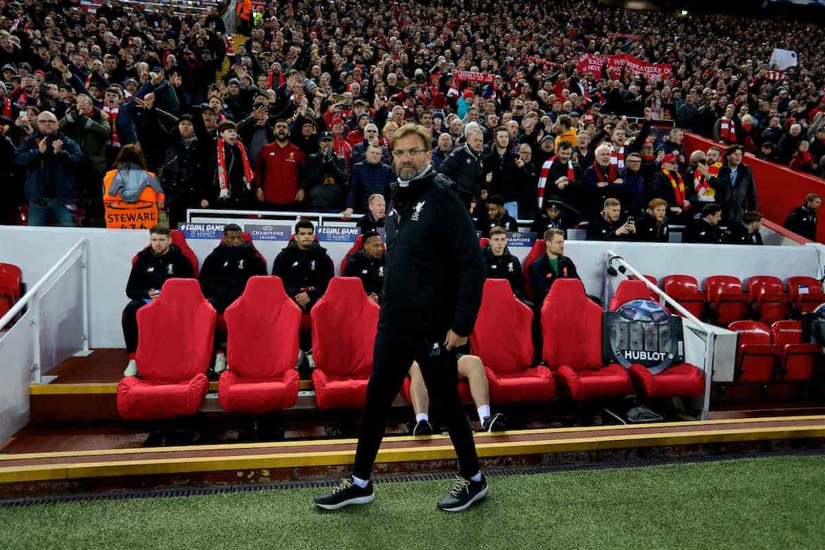 LIVERPOOL, ENGLAND - Wednesday, April 4, 2018: Liverpool's manager Jürgen Klopp before the UEFA Champions League Quarter-Final 1st Leg match between Liverpool FC and Manchester City FC at Anfield. (Pic by David Rawcliffe/Propaganda)