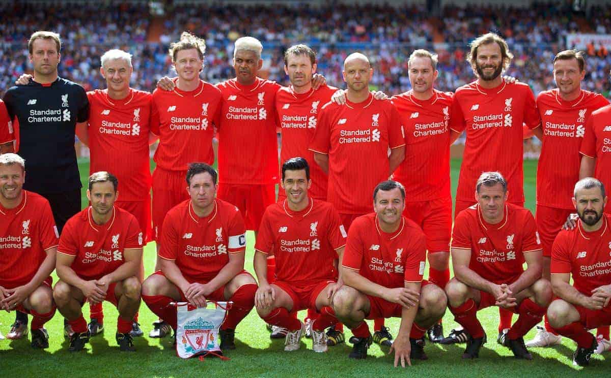 The likes of Robbie Fowler, Vladimir Smicer and Patrik Berger – who joined Liverpool from Dortmund in 1996 – are in action.