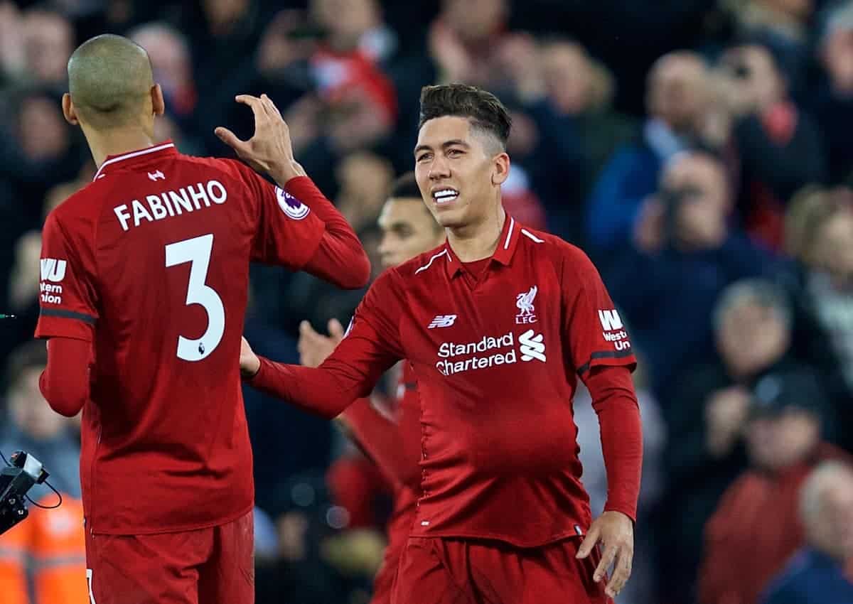 Roberto Firmino‘s hat-trick was added to by goals from Sadio Mane and Mohamed Salah, as Liverpool’s chances of title glory were enhanced greatly.