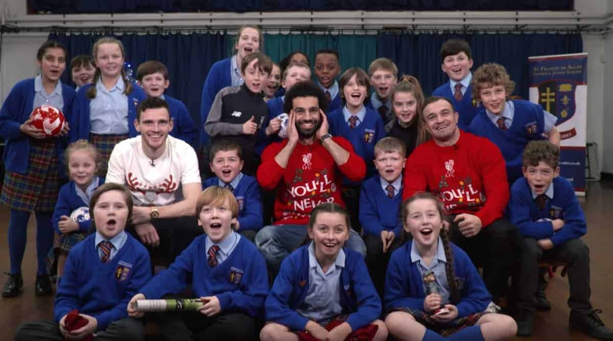 Liverpool have released their annual Christmas video, with Mohamed Salah, Andy Robertson and Xherdan Shaqiri surprising schoolkids.