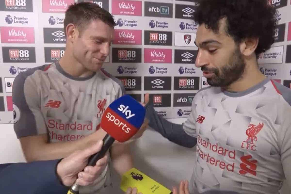Despite scoring a hat-trick in Liverpool’s 4-0 win at Bournemouth, Mohamed Salah insisted James Milner deserved the post-match recognition.