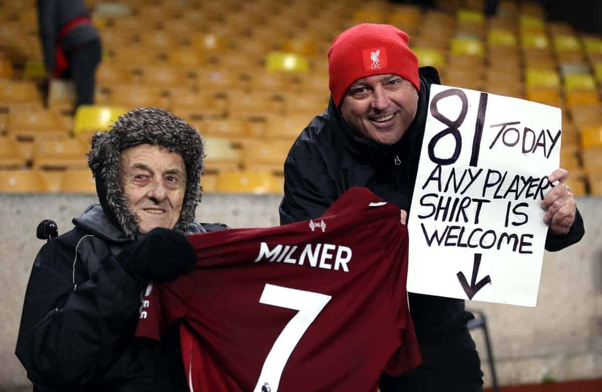 After Liverpool’s 2-0 win over Wolves, James Milner gave his shirt to two young fans at Molineux, and their response has led to widespread praise for the pair.