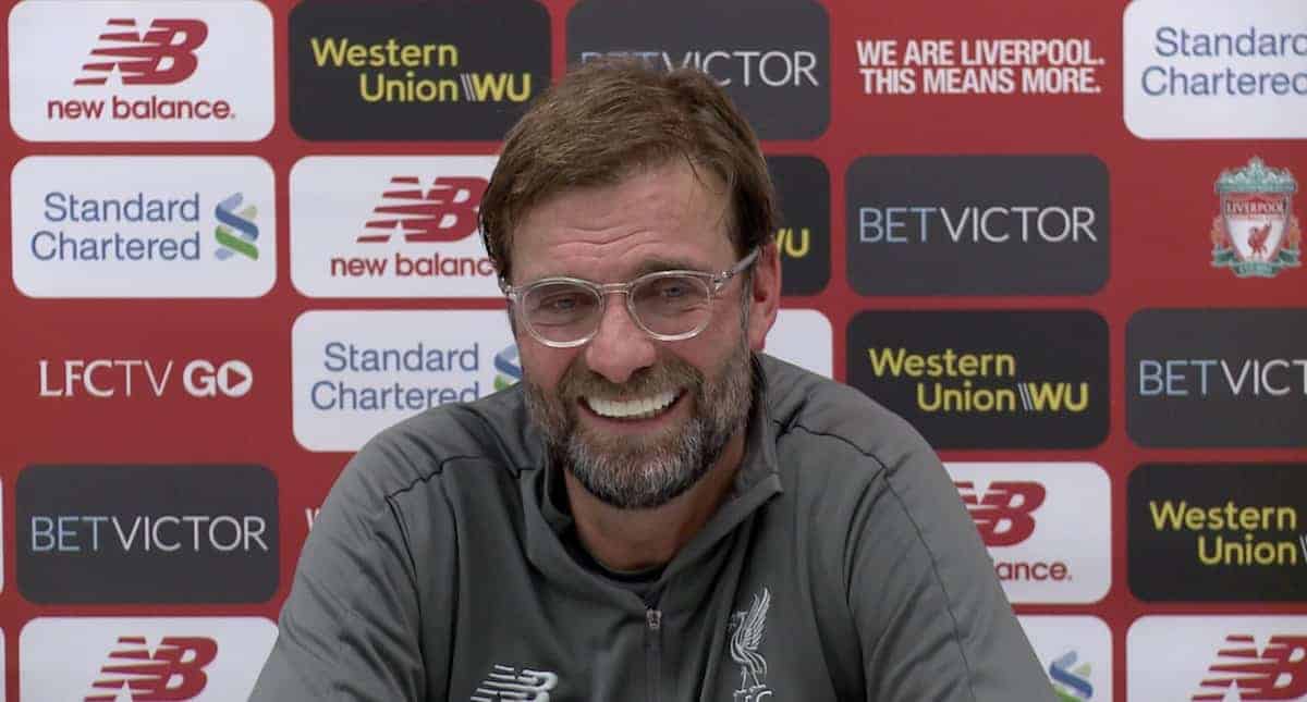 The manager fielded a series of strange, unimaginative questions on his plans to rest players against the clash with City in over two weeks’ time, and once again on how Fabinho‘s adaptation relates to that of Andy Robertson last year.