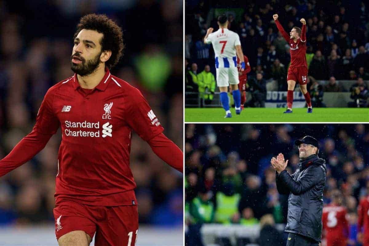 A second-half penalty converted by Liverpool’s leading goalscorer Mohamed Salah ensured Jurgen Klopp‘s men left the Amex with all three points, where they were made to work for their latest win by a stubborn and disciplined Brighton outfit.