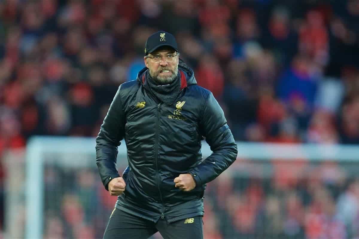 LIVERPOOL, ENGLAND - Saturday, February 9, 2019: Liverpool's manager J¸rgen Klopp celebrates after the 3-0 victory over AFC Bournemouth during the FA Premier League match between Liverpool FC and AFC Bournemouth at Anfield. (Pic by David Rawcliffe/Propaganda)