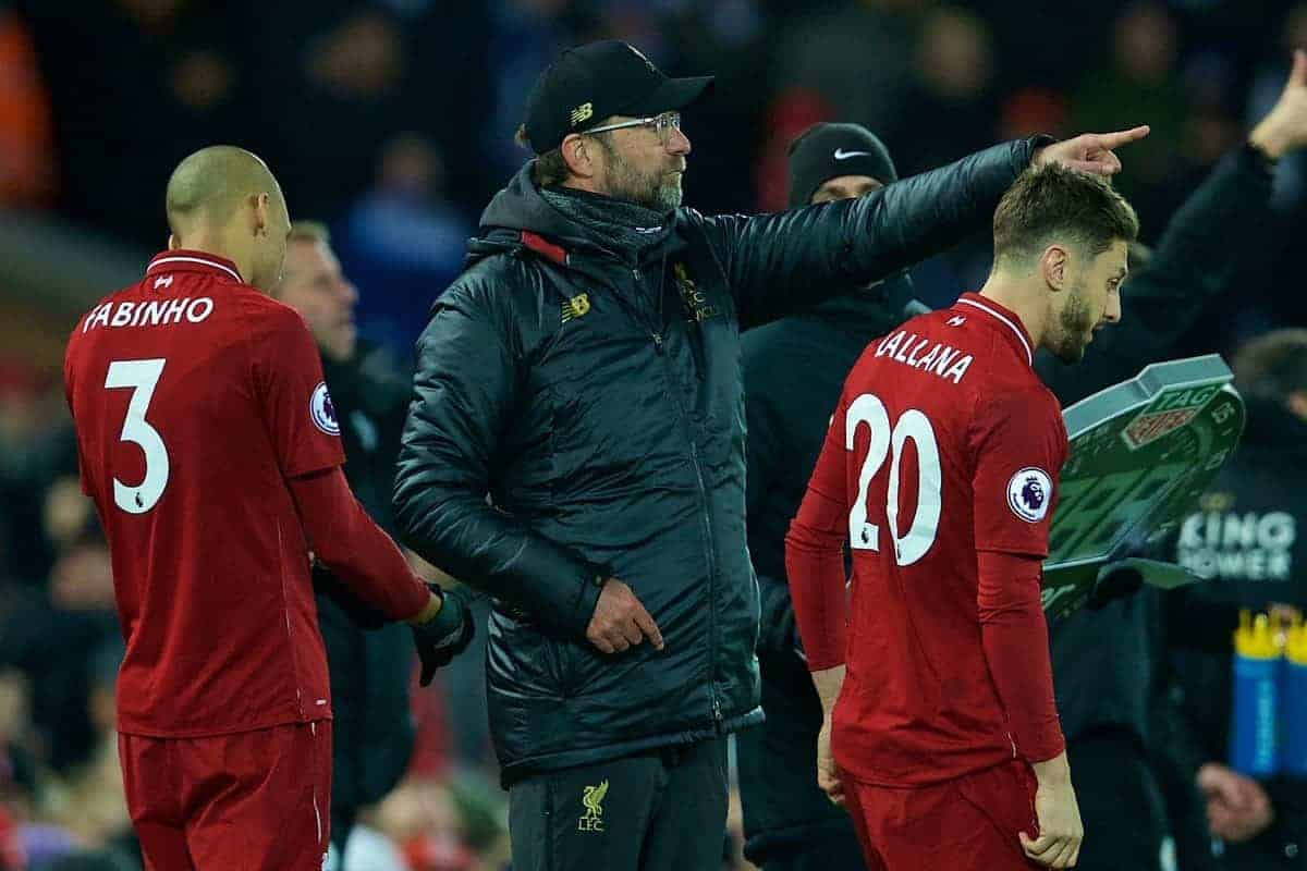 Jurgen Klopp will recall Fabinho to Liverpool’s starting lineup at Fulham, where Adam Lallana and Xherdan Shaqiri will also hope to be called upon.