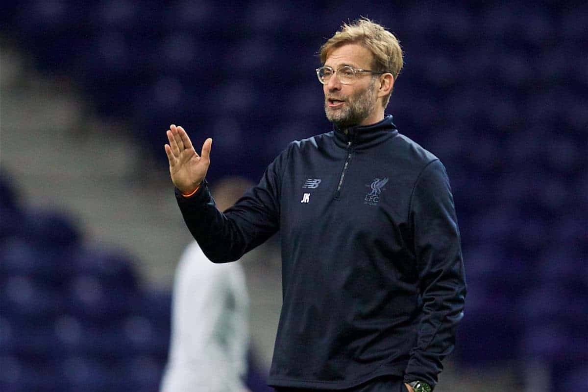 PORTO, PORTUGAL - Tuesday, February 13, 2018: Liverpool's manager Jürgen Kloppg during a training session at the Estádio do Dragão ahead of the UEFA Champions League Round of 16 1st leg match between FC Porto and Liverpool FC. (Pic by David Rawcliffe/Propaganda)