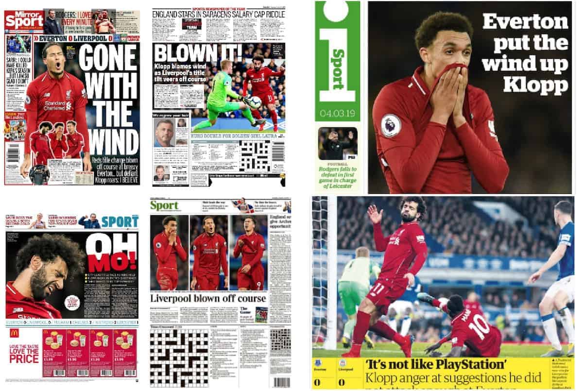 The media thought Liverpool’s 0-0 draw at Everton was damaging to their title hopes, and were critical of Jurgen Klopp and Mohamed Salah’s performances.