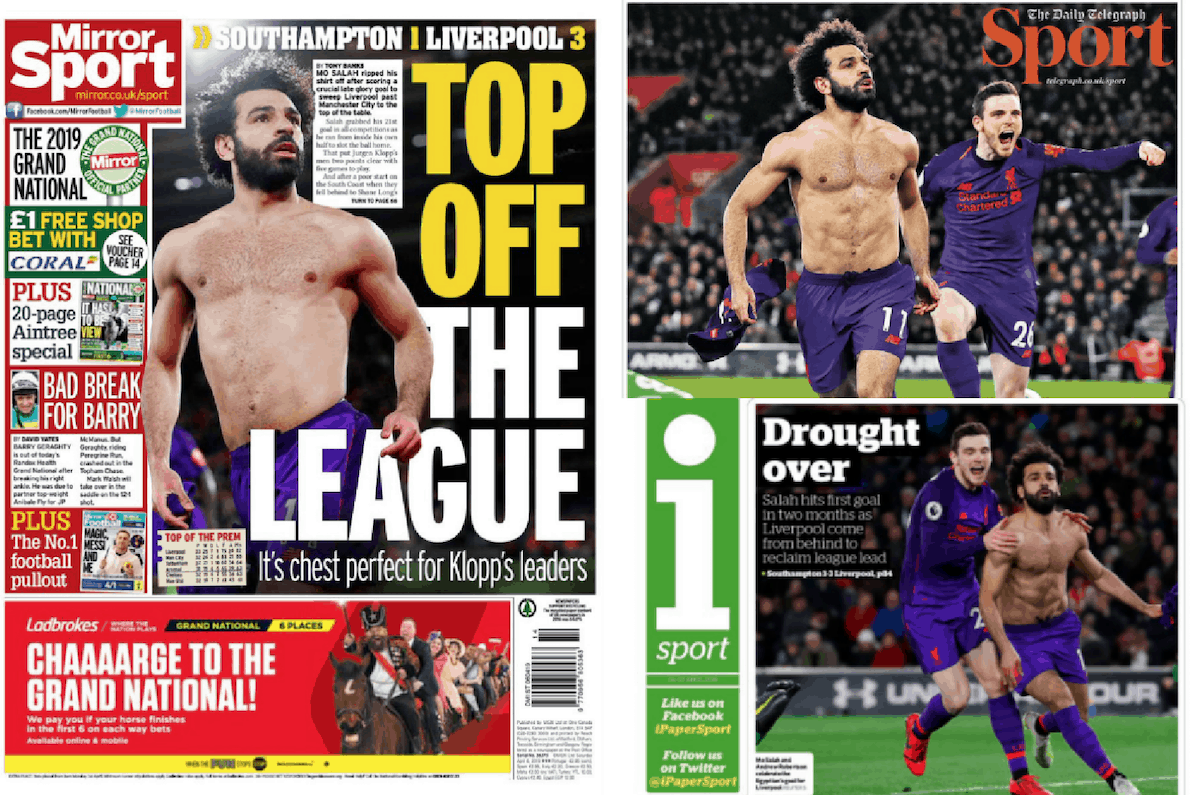 The media lauded Liverpool’s comeback and Jurgen Klopp’s changes while praising Mohamed Salah’s decisive goal in the 3-1 win at Southampton.
