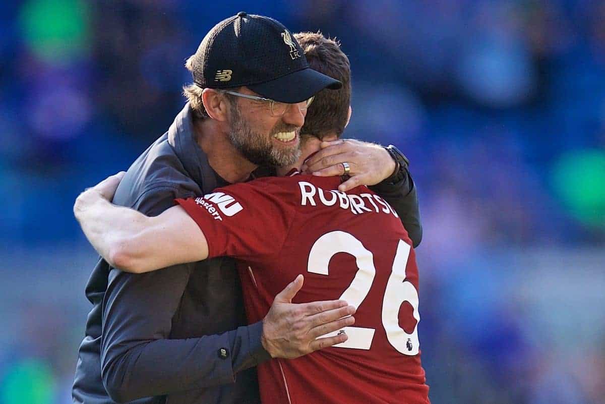 CARDIFF, WALES - Saturday, April 20, 2019: Liverpool's manager Jürgen Klopp before the FA Premier League match between Cardiff City FC and Liverpool FC at the Cardiff City Stadium. (Pic by David Rawcliffe/Propaganda)
