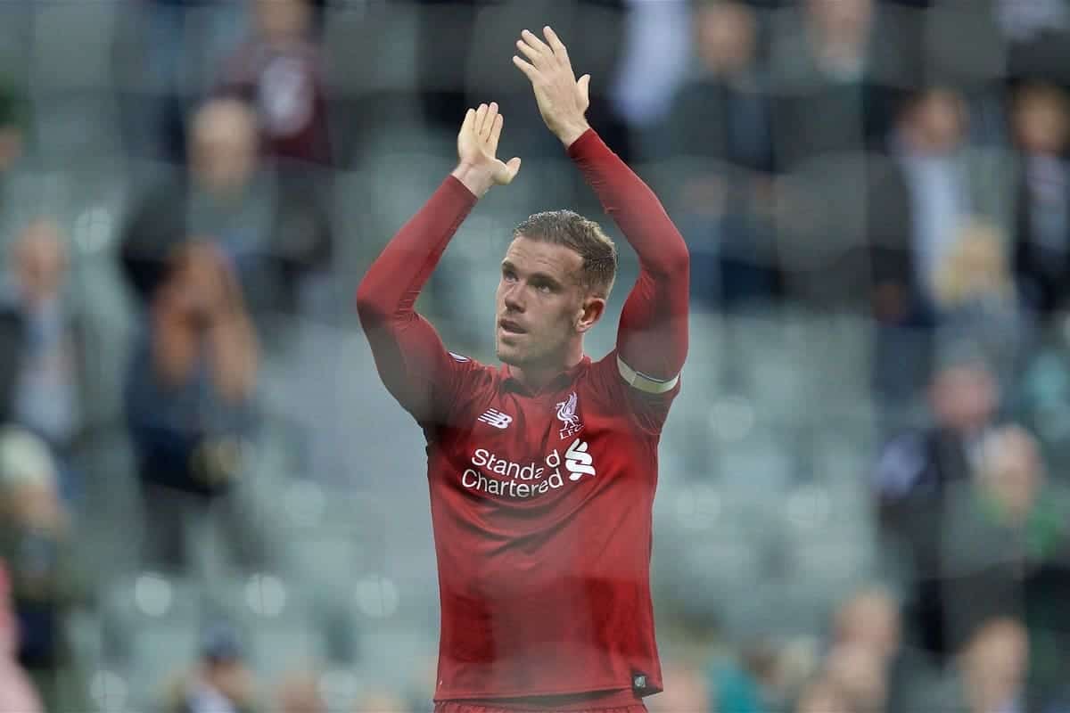 NEWCASTLE-UPON-TYNE, ENGLAND - Saturday, May 4, 2019: Liverpool's captain Jordan Henderson applause the supporters after the FA Premier League match between Newcastle United FC and Liverpool FC at St. James' Park. (Pic by David Rawcliffe/Propaganda)
