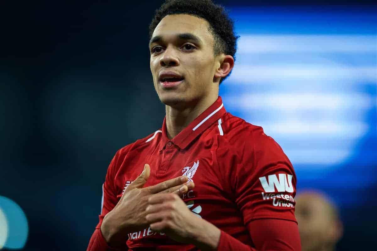 MANCHESTER, ENGLAND - Thursday, January 3, 2019: Liverpool's Trent Alexander-Arnold during the FA Premier League match between Manchester City FC and Liverpool FC at the Etihad Stadium. (Pic by David Rawcliffe/Propaganda)