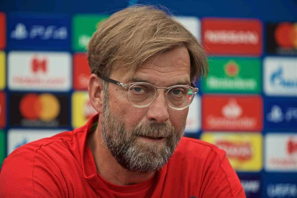 LIVERPOOL, ENGLAND - Tuesday, May 28, 2019: Liverpool's manager Jürgen Klopp during a press conference at Melwood Training Ground ahead of the UEFA Champions League Final match between Tottenham Hotspur FC and Liverpool FC. (Pic by David Rawcliffe/Propaganda)