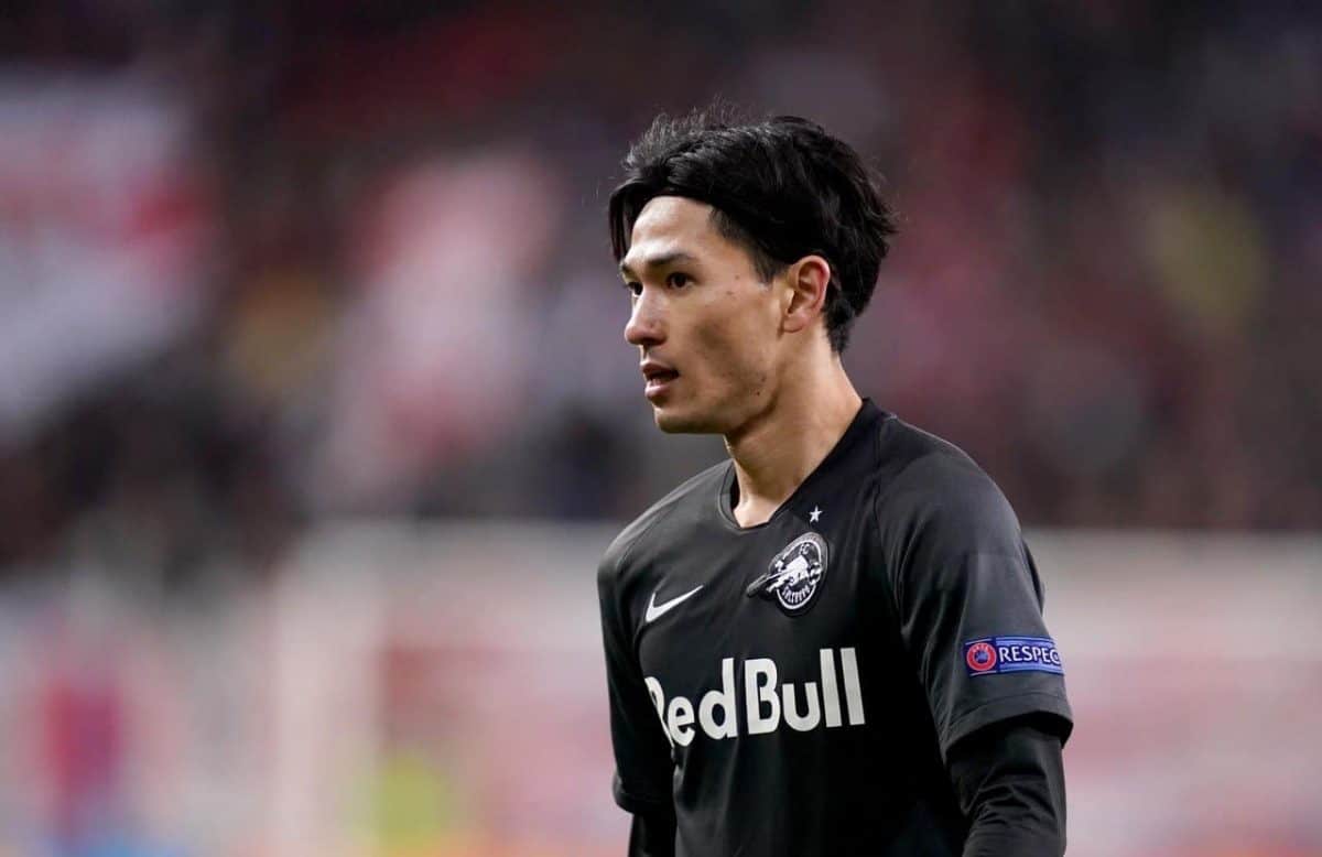 SALZBURG, AUSTRIA - Tuesday, December 10, 2019: FC Salzburg's Takumi Minamino during the final UEFA Champions League Group E match between FC Salzburg and Liverpool FC at the Red Bull Arena. (Pic by David Rawcliffe/Propaganda)