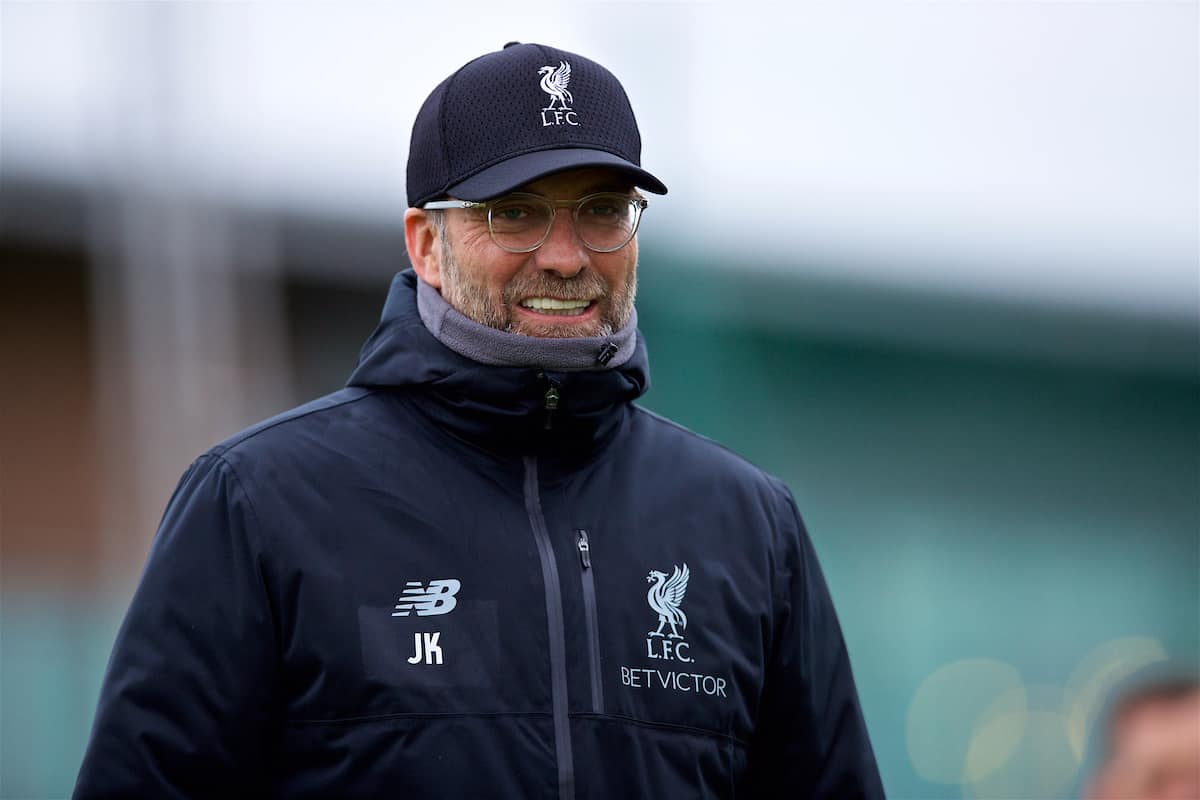 LIVERPOOL, ENGLAND - Tuesday, March 12, 2019: Liverpool's manager Jürgen Klopp during a training session at Melwood Training Ground ahead of the UEFA Champions League Round of 16 1st Leg match between FC Bayern München and Liverpool FC. (Pic by Laura Malkin/Propaganda)