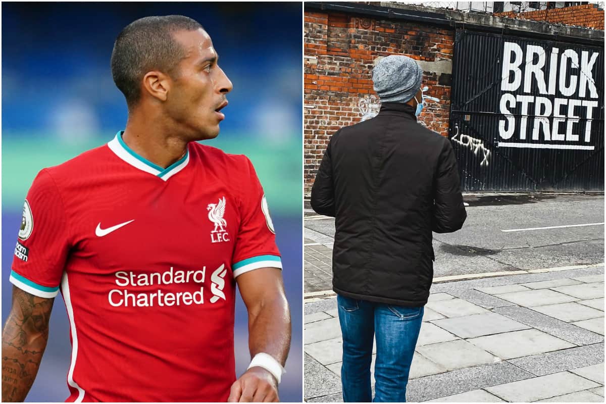 Thiago is no longer self-isolating following his bout of COVID-19, with the Liverpool midfielder enjoying a walk around the city’s Baltic Triangle on Saturday.