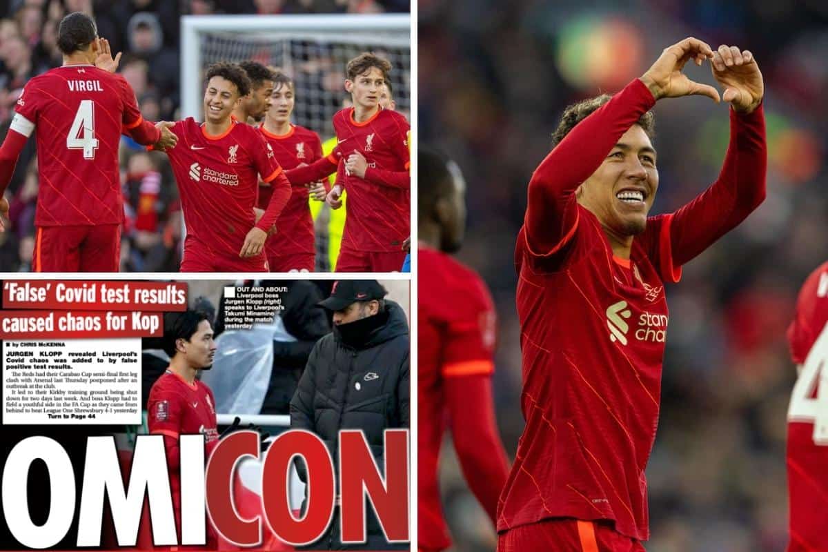 Neco Williams and Joe Gomez helped explain why Thursday’s Carabao Cup semi-final against Arsenal was postponed. With Takumi Minamino and Firmino making their returns as substitutes and the Brazilian latching on to Ibrahima Konate’s scuffed shot to backheel in Liverpool’s third goal, their problems may be easing.”