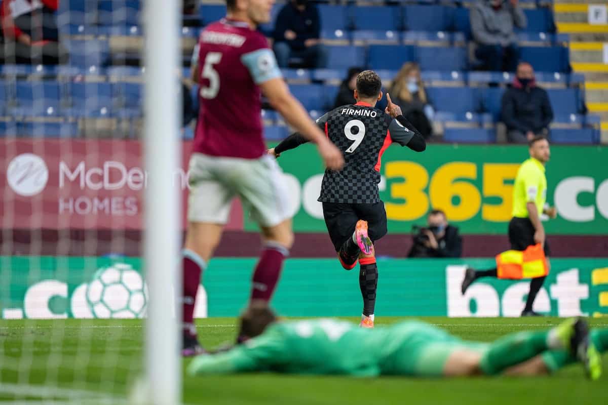 Firmino (five in 10 games) is also tied with Sadio Mane (five in eight) for the most Liverpool goals scored against Burnley in the Premier League era.
