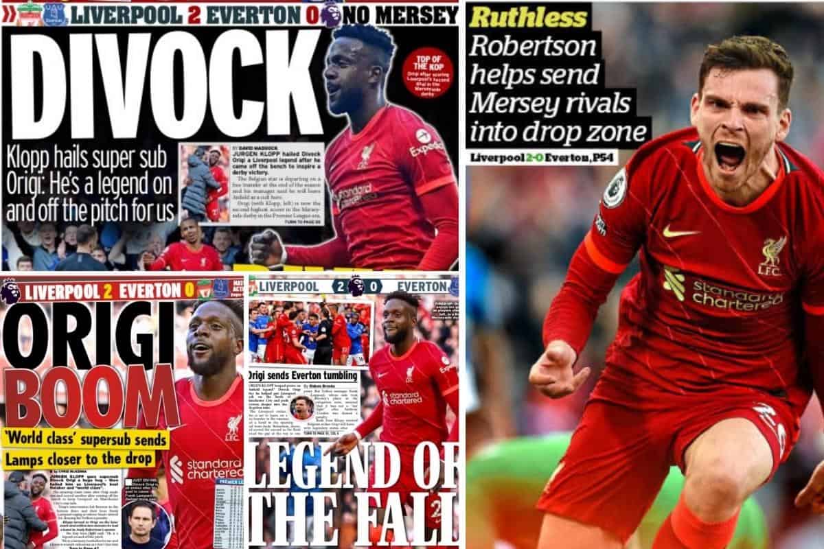 The watching media hailed Liverpool’s dogged 2-0 win at home to Everton on Sunday, as Divock Origi added another goal to his iconic collection.