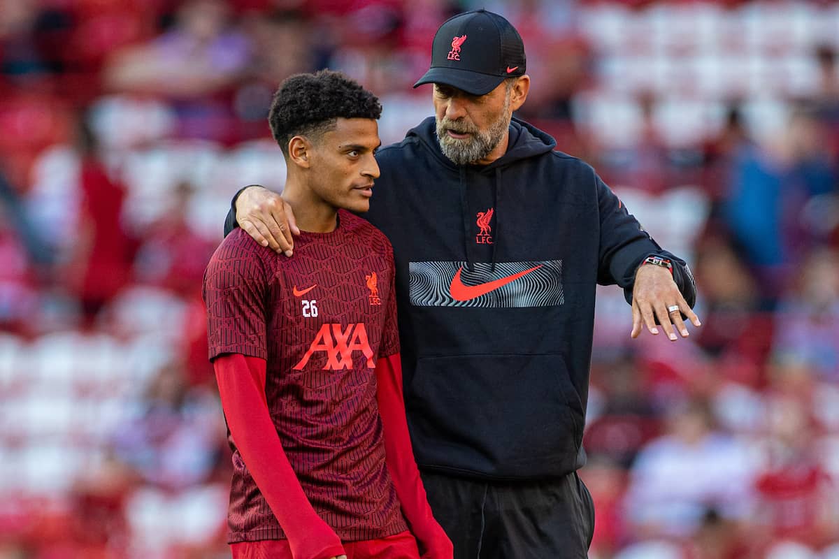 A clutch of youngsters were still involved following the conclusion of the pre-season schedule, with Stefan Bajcetic, Isaac Mabaya, Bobby Clark, Luke Chambers and Melkamu Frauendorf all warming up in the mild conditions.