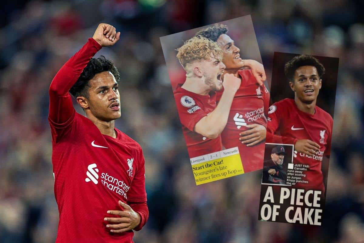 Liverpool earned a last-gasp 2-1 win over Newcastle on Wednesday night, with the media hailing Harvey Elliott and Fabio Carvalho‘s impact.