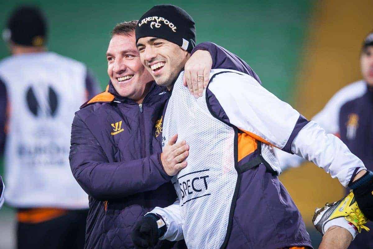 05.12.2012, Stadio Friuli, Udine, ITA, UEFA EL, Udinese Calcio vs FC Liverpool, Gruppe A, Training, FC Liverpool, im Bild Brendan Rodgers (Trainer, Liverpool FC), Luis Suarez (# 07, Liverpool FC) // Brendan Rodgers (Trainer, Liverpool FC), Luis Suarez (# 07, Liverpool FC) during Training of Liverpool FC before the UEFA Europa League group A match between Udinese Calcio and Liverpool .FC at the Stadio Friuli, Udinese, Italy on 2012/12/05. EXPA Pictures © 2012, PhotoCredit: EXPA/ Juergen Feichter