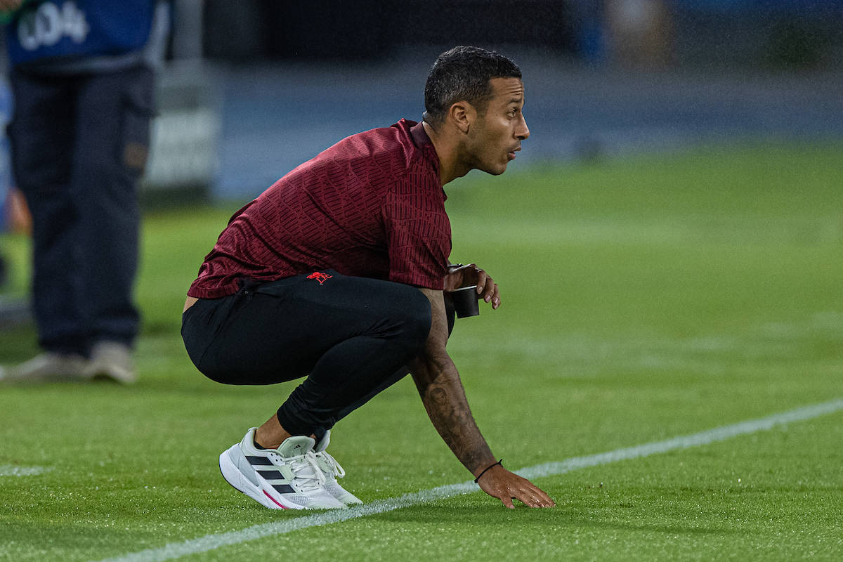 Thiago was not part of the group put through their paces in Kirkby, though there is no confirmation yet that the Spaniard will be unavailable.