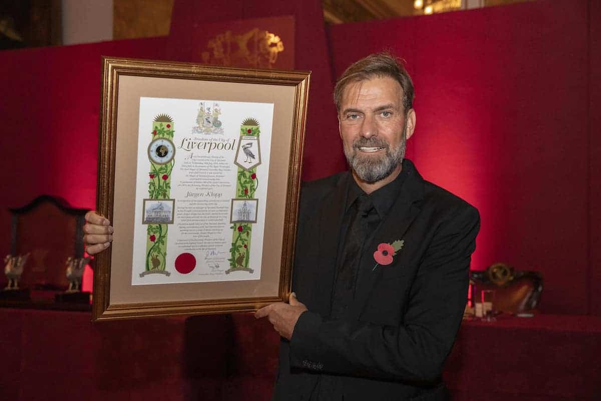 Liverpool manager Jurgen Klopp was humbled to become only the second foreign national to be awarded the Freedom of the City.