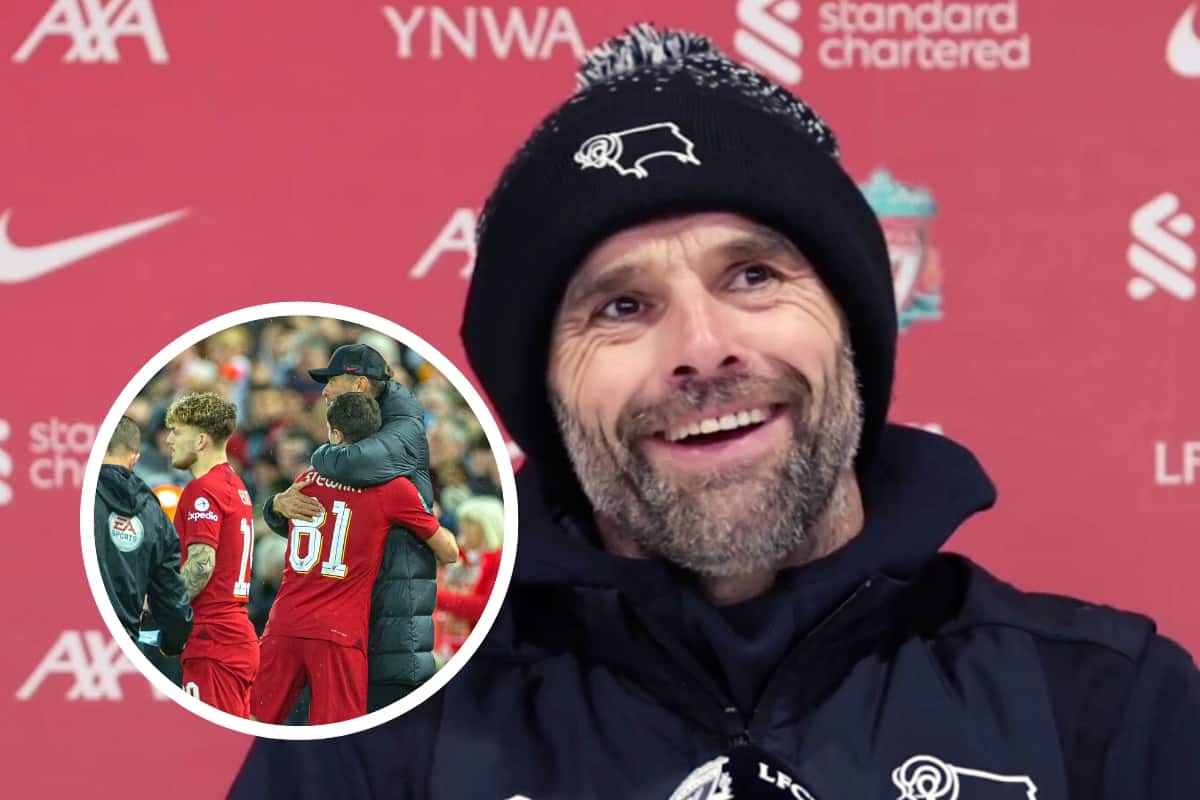 Derby manager Paul Warne was in good form after his side’s penalty shootout defeat with brilliant words about “seven-foot” Jurgen Klopp and “respectful” Liverpool.