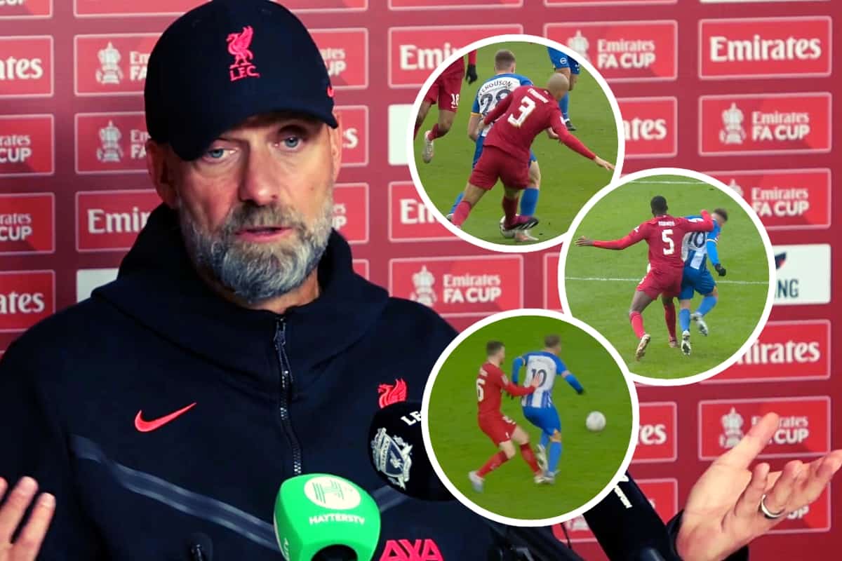 Fabinho, Ibrahima Konate and Andy Robertson could all have been sent off at Brighton, depending on who you listen to. But what did Jurgen Klopp say?