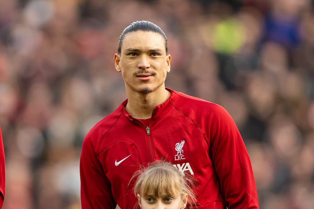 LIVERPOOL, ENGLAND - Sunday, March 5, 2023: Liverpool's Darwin Núñez before the FA Premier League match between Liverpool FC and Manchester United FC at Anfield. (Pic by David Rawcliffe/Propaganda)