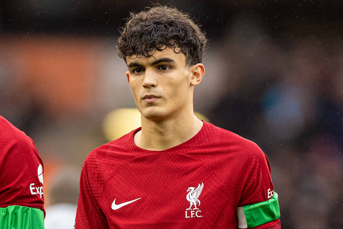 WOLVERHAMPTON, ENGLAND - Saturday, February 4, 2023: Liverpool's Stefan Bajcetic lines-up before the FA Premier League match between Wolverhampton Wanderers FC and Liverpool FC at Molineux Stadium. (Pic by David Rawcliffe/Propaganda)