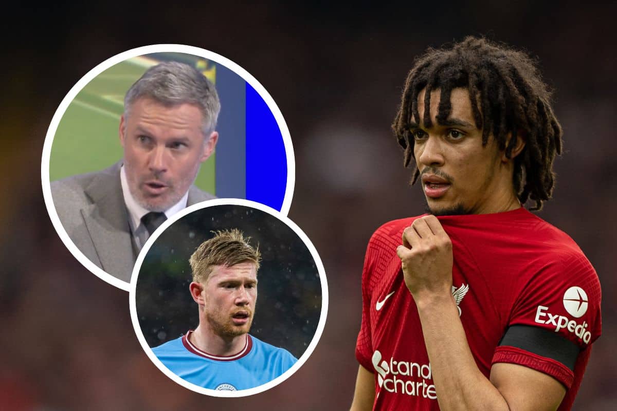 After Liverpool thrashed Leeds, Jamie Carragher lauded Trent Alexander-Arnold, saying “only Kevin De Bruyne” is better in his role in the Premier League.