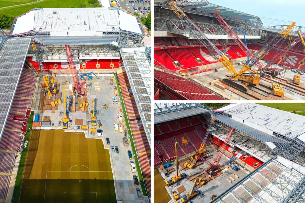 Two large cranes have been on the pitch to facilitate the development and the removal of the current roof, not something you see at Anfield every day!